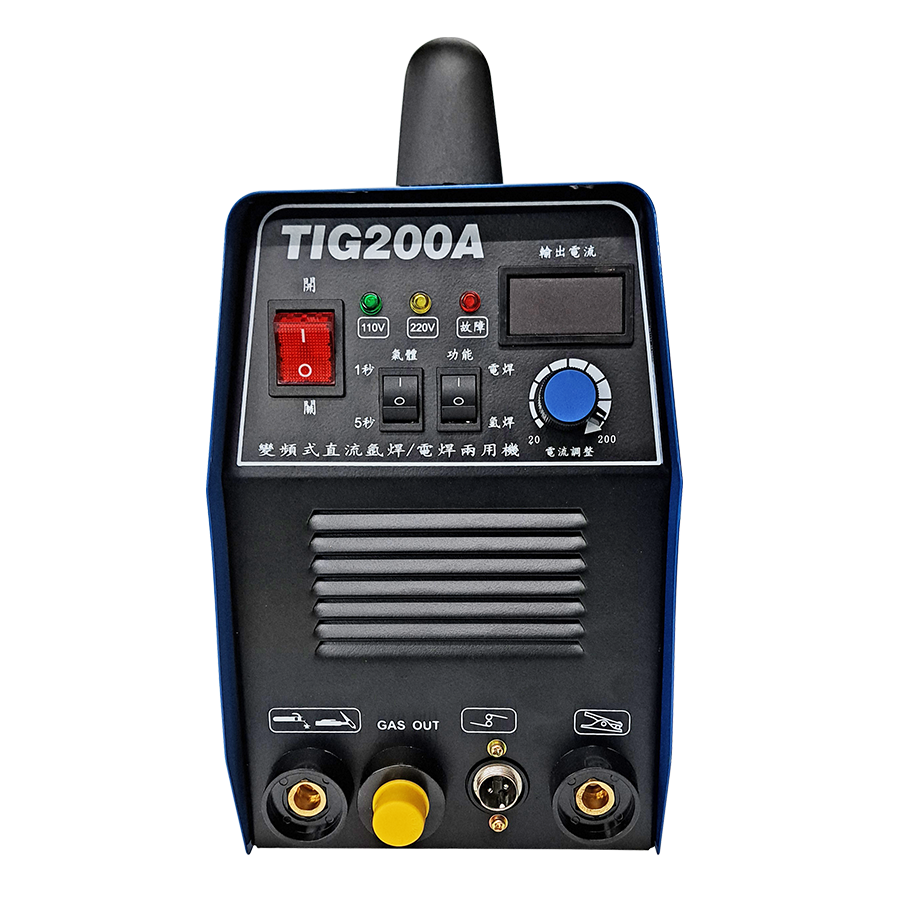 - 氬焊機-TIG200A是以鎢棒作為電極加上氬氣形成保護氣罩之焊接方法,優點是在焊接過程中不產生氧化和其他污染物質,從而使焊接接頭更加牢固和耐腐蝕。